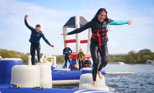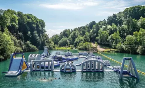 Or maybe you want to get into the water. Those aged 6 years plus, can get wet and wild on this inflatable playground. Expect oversized trampolines, monkey bars, slides, swings and more.
