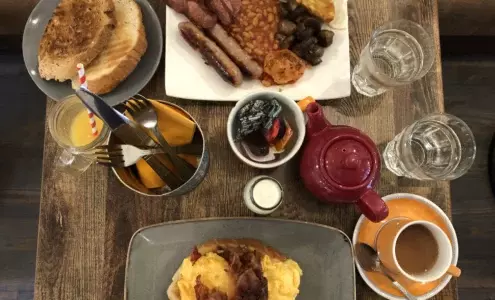 The Scoffs English is legendary, so much so it’s served all day long. A plate full, enjoy butcher’s sausages, thick cut bacon, a fried egg, oven-roasted tomato, Heinz beans, pan-fried mushrooms, a hash brown and toast. Feeling particularly peckish? Size up for the Double English. Or, gobble up The Smoker; bloomer toast, three scrambled St Ewe’s free range eggs, melted Applewood smoked cheese topped with Cornish smoked bacon. Wash your breakfast down with cold brew coffee!