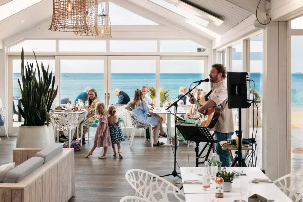 The Carbis Bay Estate’s family-friendly brasserie, the Beach Club sits just above the Bay. Sliding windows vanish on warm days so the line between table and shoreline blurs. Daytime staples are generous: chilli-lime prawns on sourdough, whipped feta salad piled with garden peas, and a chowder served in a bread bowl. By night white linens appear, candles flicker under storm lanterns and the specials board swings toward serious seafood, such as roast monkfish with chorizo butter, or scallops on cauliflower puree with shaved truffle. The youngest diners are well catered for too, where children’s meals come complete with a soft drink and dessert. Adults will enjoy rounding the meal off with affogato poured at the table, and watch the sun begin to set from the comfort of your dining table.