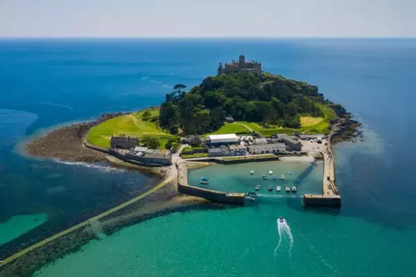 Visitors to St Michael’s Mount can explore an enchanting medieval castle filled with fascinating artefacts, beautiful rooms, and panoramic views stretching across the bay to Penzance. Wander through exotic terraced gardens cascading down the slopes, spot dolphins in the shimmering waters below, and discover the legends of giants and ancient pilgrims who once walked these paths.