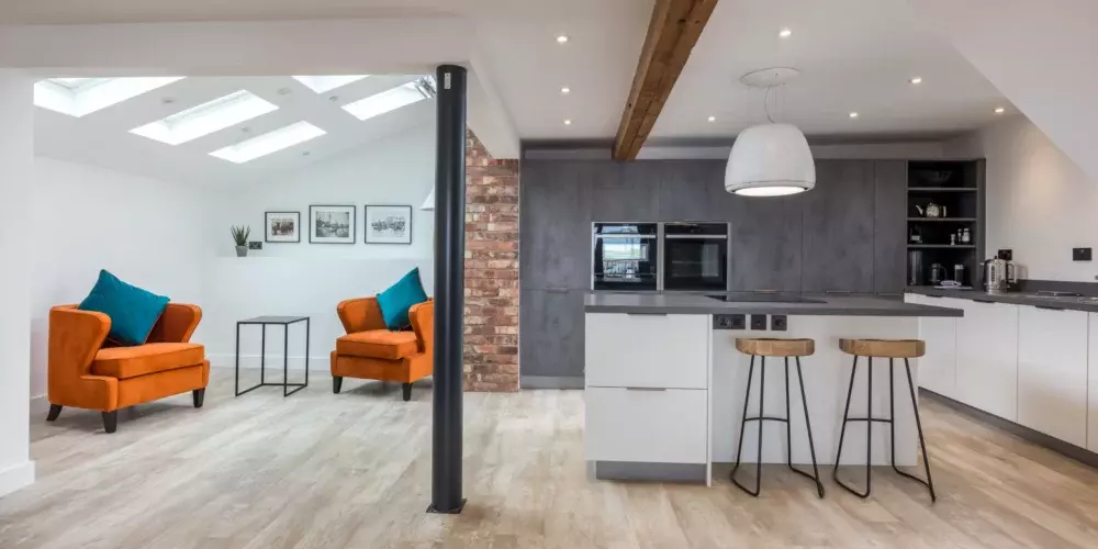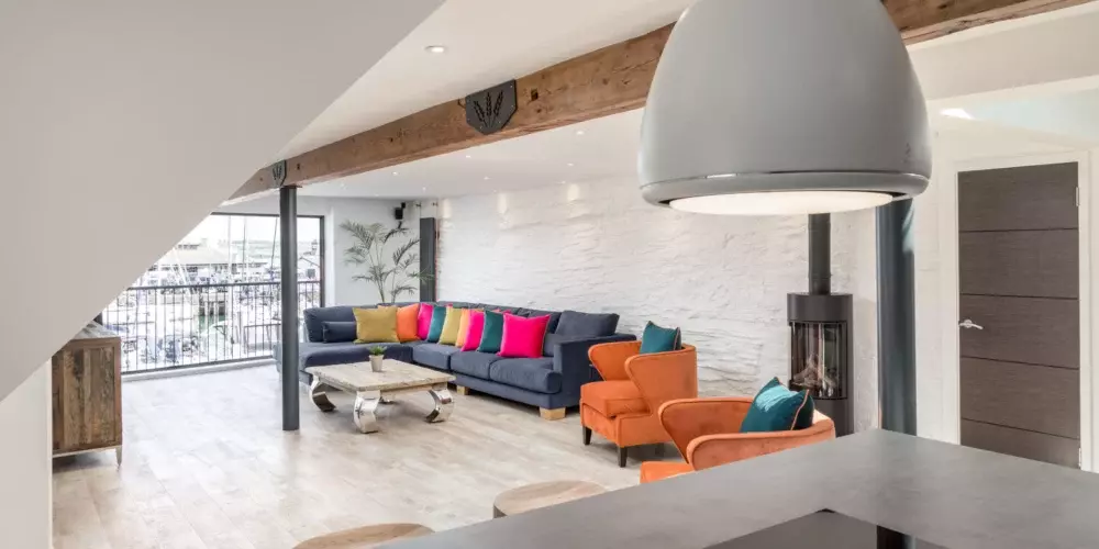 With spectacular views over Padstow Harbour and the Camel Estuary, The Grain Store offers stylish accommodation with a touch of heritage. Perfect for small families or groups of friends attending the folk festival, it boasts chic interiors and a prime Padstow location, just a short drive from Wadebridge.
