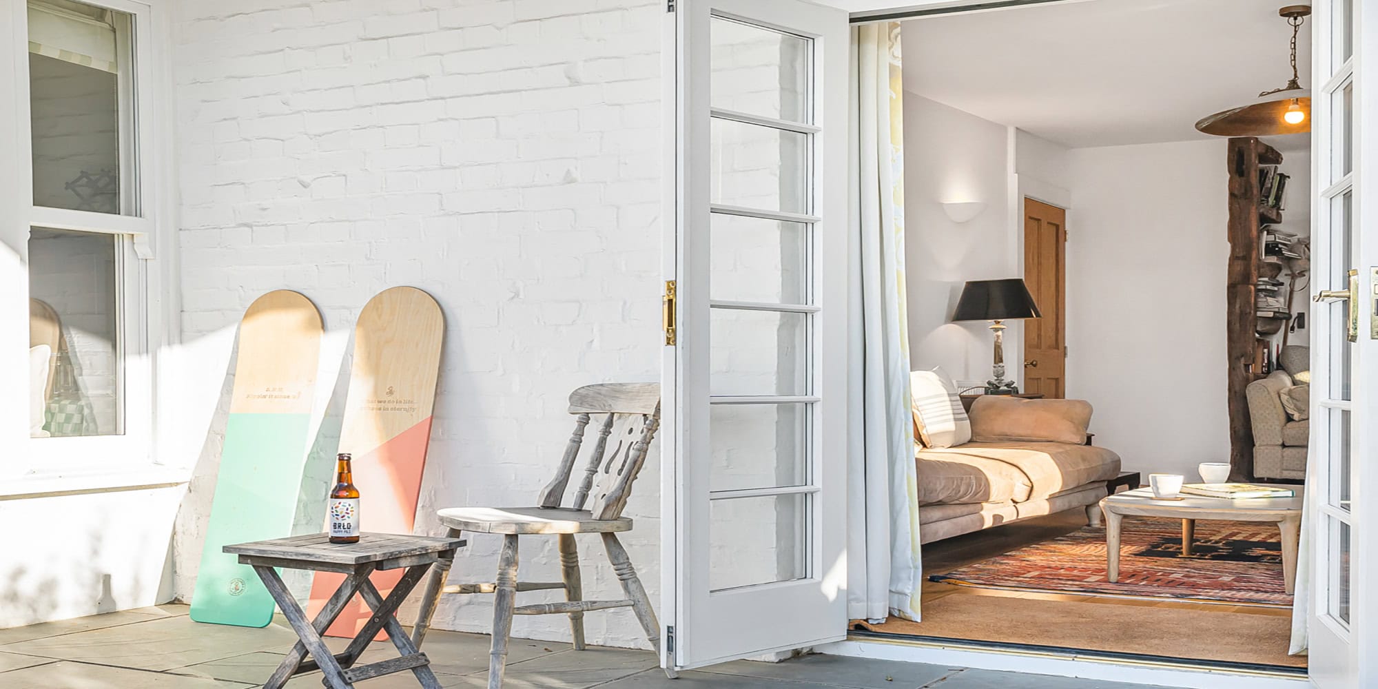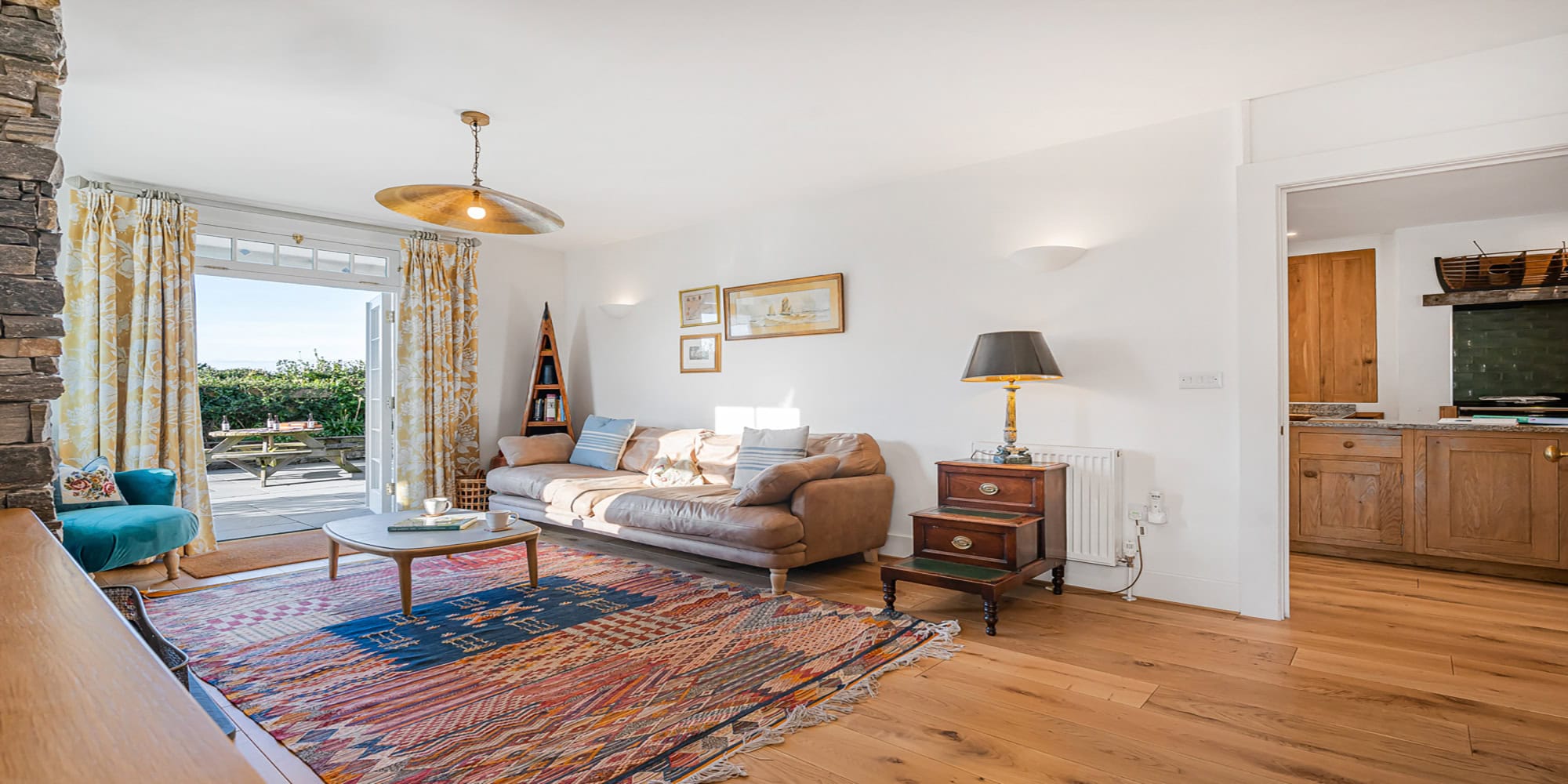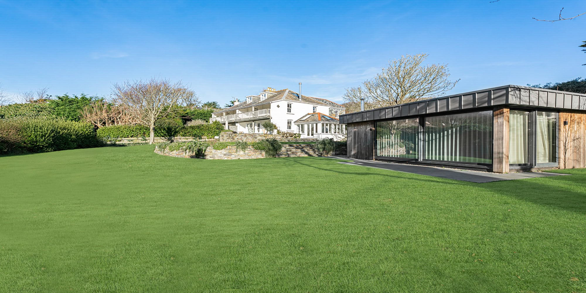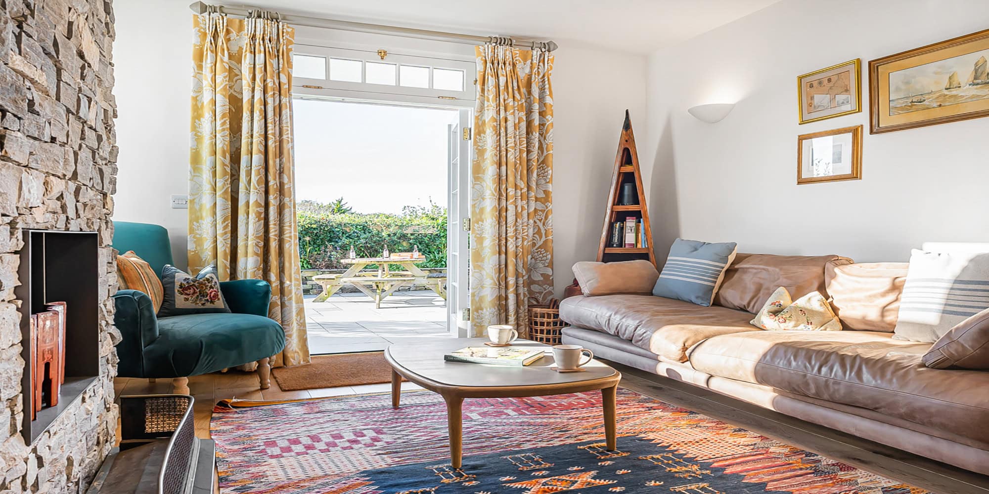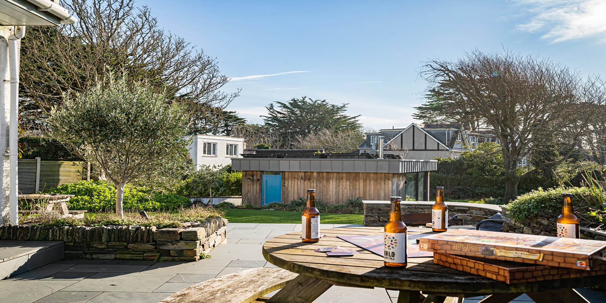 If you’re looking to mix work with pleasure on your Cornish holiday, then the separate garden room is a fabulous space. There’s a dedicated desk setup provides a comfortable space for catching up on emails or planning days out, while the cosy sofa invites you to switch off with a book once you’re done. The addition of a handy kitchenette means you can make a fresh coffee, or simple snack without needing to head back to the main house.