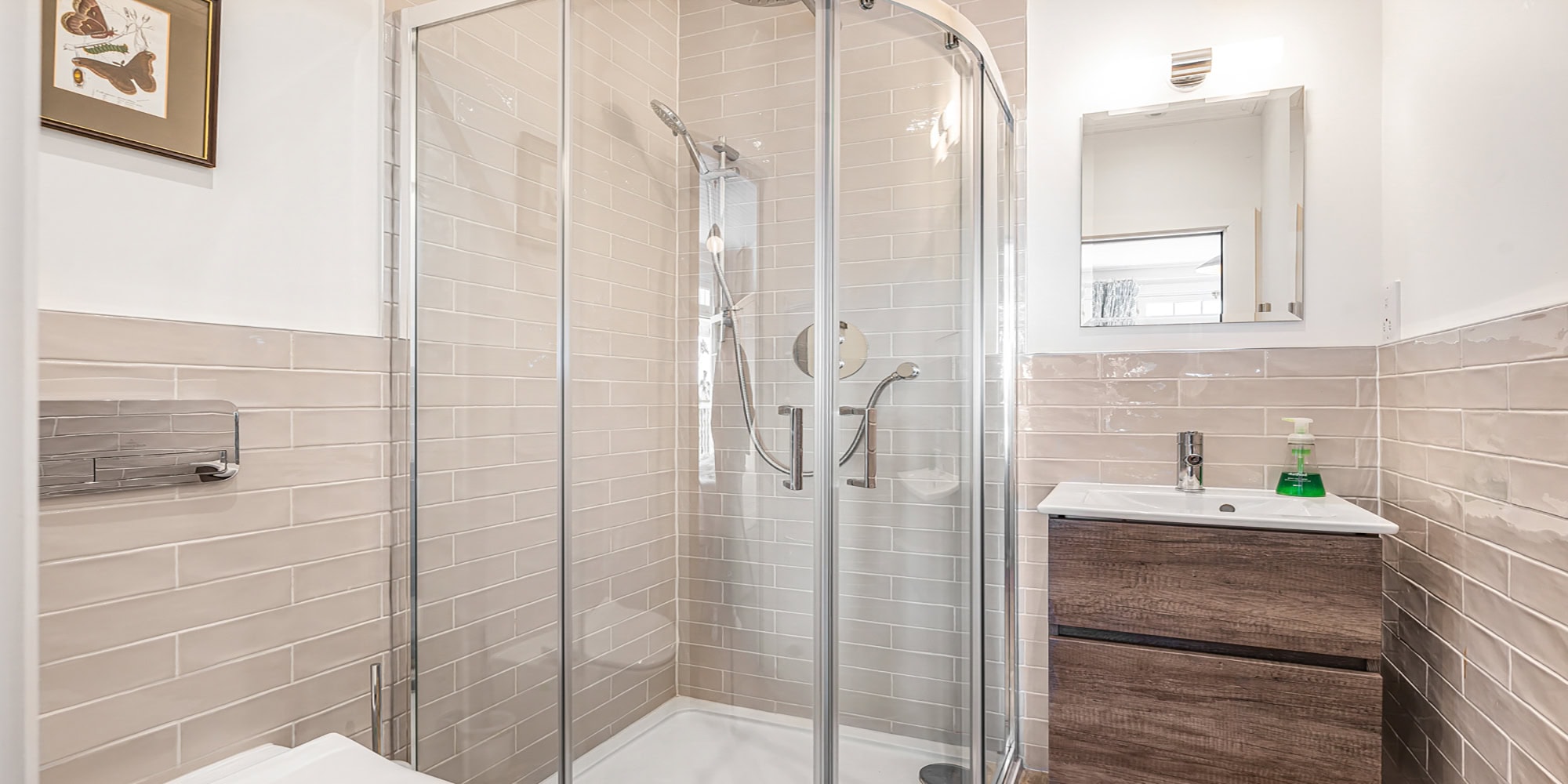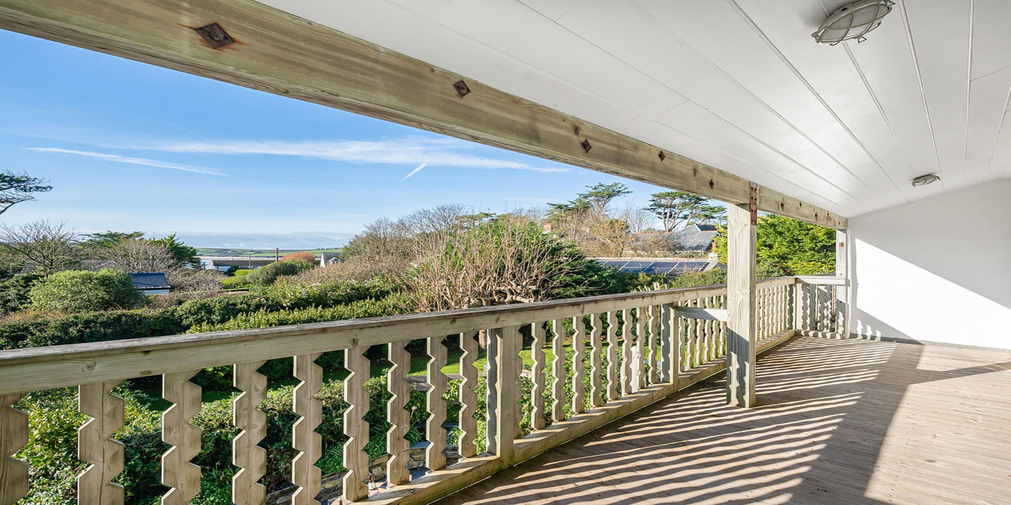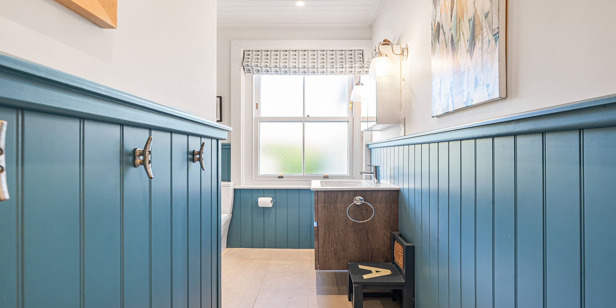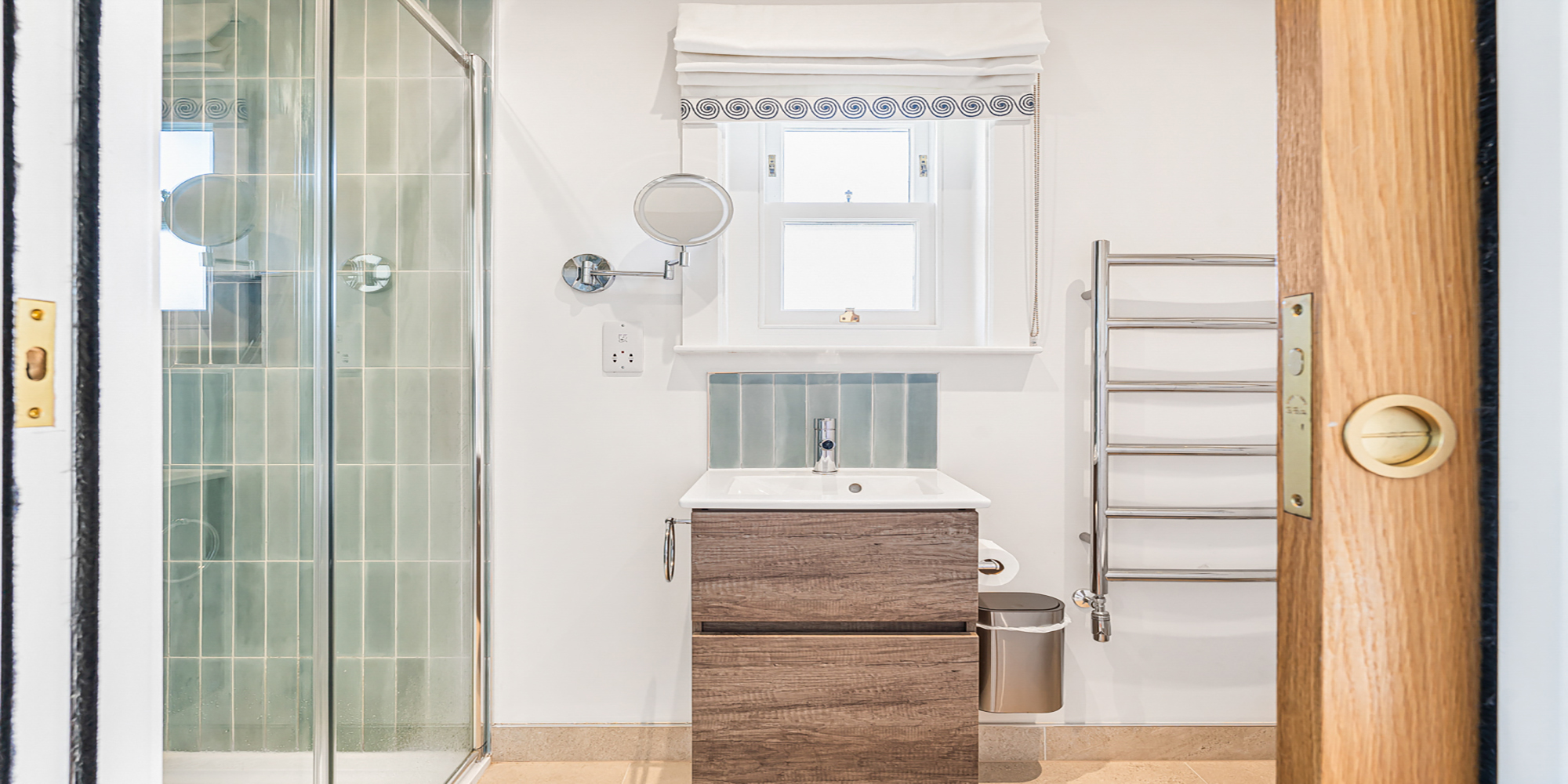 The top floor is home to a delightful Hamptons-style bedroom with a double bed, small wall-mounted smart TV, and an ensuite with large bath and shower attachment. The real showstopper is the far-reaching sea view, best enjoyed from the private balcony.