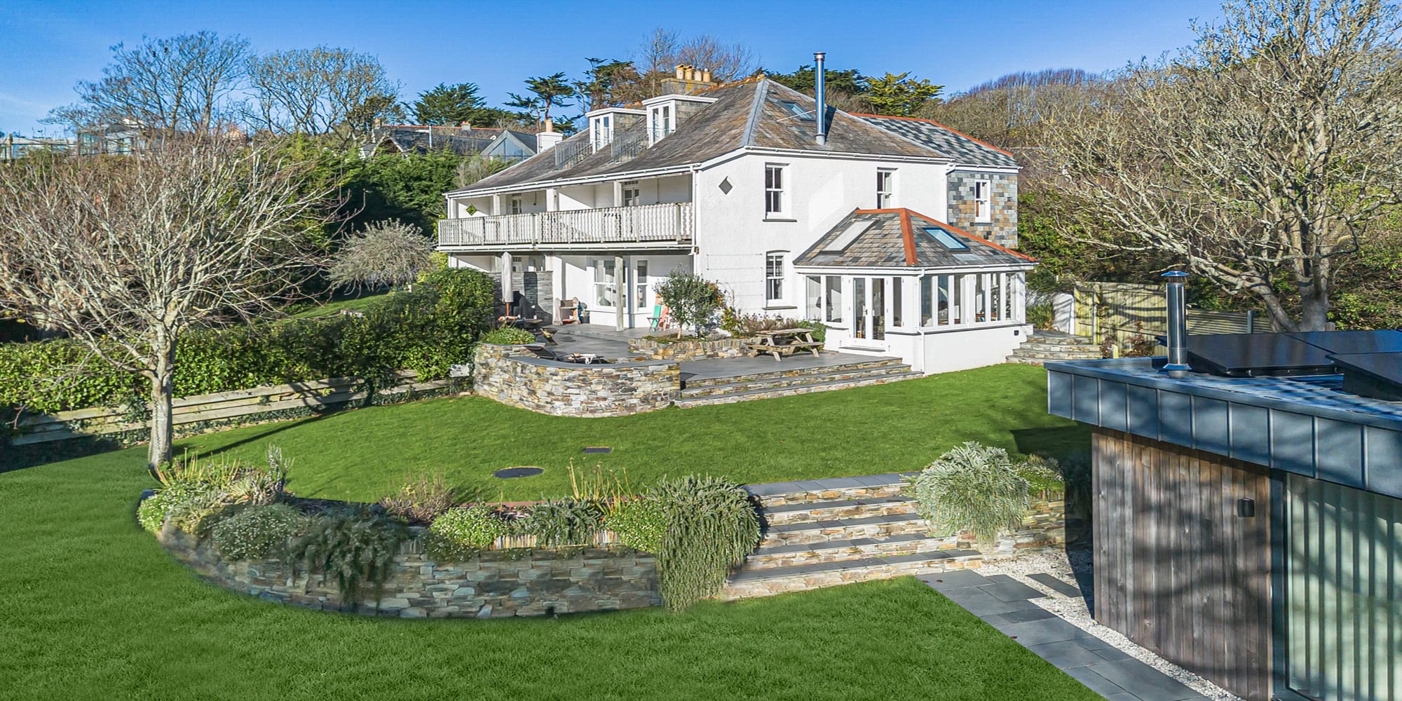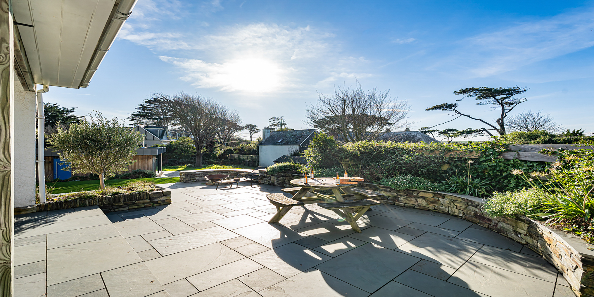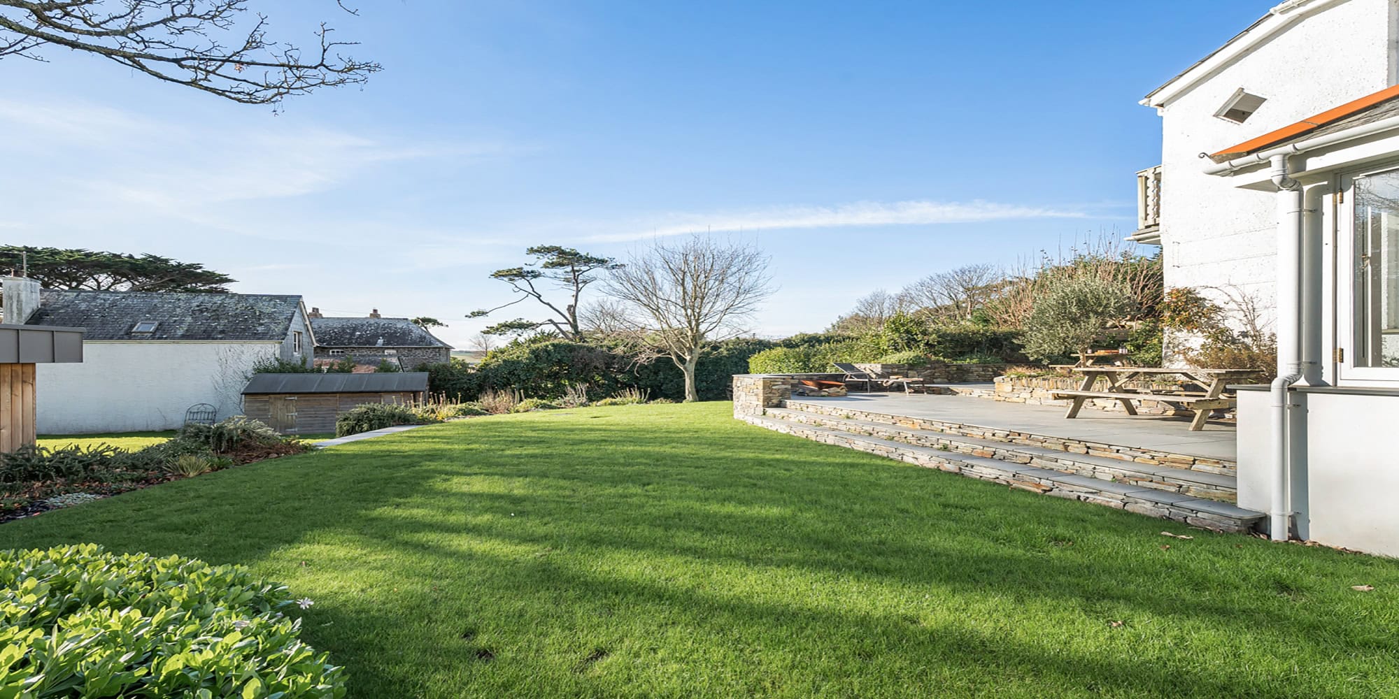 Outside is equally appealing. The large, two-tiered garden offers fantastic space for garden games. Grill enthusiasts will love the Big Green Egg BBQ and dedicated cooking area on the spacious wrap-around patio. Cornish stone walling and lush planting create a wonderfully tranquil setting, with picnic-style benches, wooden chairs and sun loungers ready for lazy afternoons under the Cornish sun.