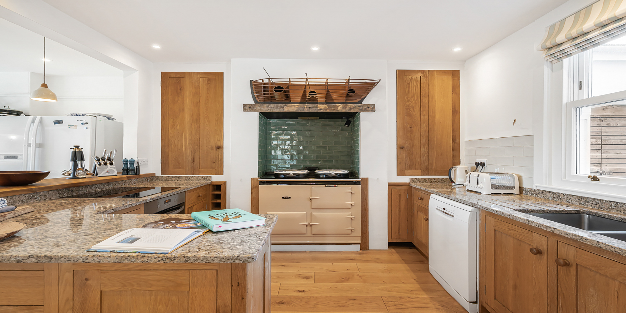 Press pause and unwind at this peaceful retreat. Arranged over three floors, the ground floor follows a traditional layout: a country-style kitchen/diner complete with AGA, sizeable wooden table, large bay window and plush window seat. In the cosy lounge you’ll find a wood burner, large smart TV, a generous selection of family board games, and direct access to the patio. There’s also a handy sunroom, utility space and a downstairs wet room.